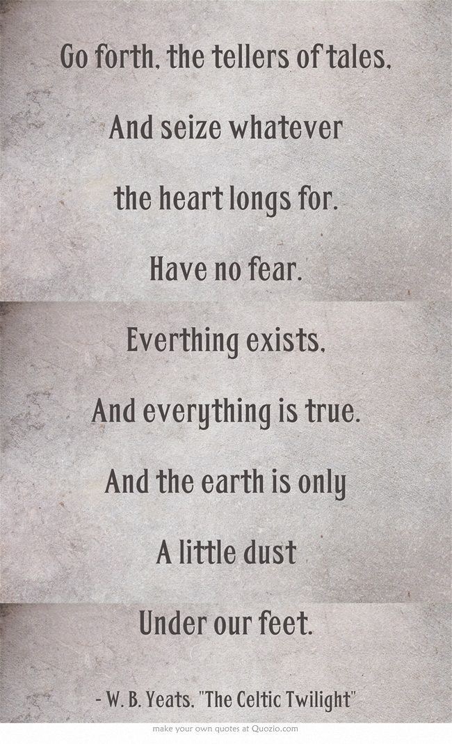 Beautiful, wonderful W.B Yeats really knows what he’s talking about when it comes to writing. A lot of his work was inspired by heartache and unrequited love – the poor guy! But what a gift he has given to us all by turning his pain into words and inspiring us to use our own personal experiences to make our writing more powerful.